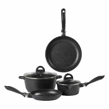 Bring home this elegant and durable non-stick cookware set. This cookware set contains a frying pan, Kadai, and an Omni Tawa that features a superior non-stick coating with a two-layer metallic finish exterior. These are gas and induction compatible and come with soft-touch handles that are heat-resistant for easy holding while cooking.
