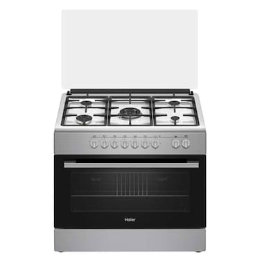 Haier HCR6050EGS free-standing gas cooker with oven, where you can now saute, steam, fry, boil and pressure cook. This pressure cooker has the capacity to cook, strain, and serve. The hard anodised surface doesn't stain. The non-toxic nature of the cooker assures you hygienic cooking experience.