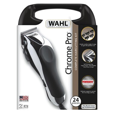 The Wahl 79524 ChromePro Deluxe Corded Hair Clipper Combo has a corded hair clipper set in chrome finish. Professional cutting with even results thanks to precision ground self-sharpening high carbon-steel blade set. Powerful and long-life vibration motor for non-stop use with Power Drive cutting system. Great for hair cutting all hair types, trimming your beard or nose hair, and cleaning up neckline, sideburns, and trimming around ears. Self-sharpening precision blades stay sharper longer and are suitable for any hairstyle, texture, or thickness. Adjustable taper lever for blending and customized cutting lengths. The powerful motor helps achieve a smooth cut without pulling.
