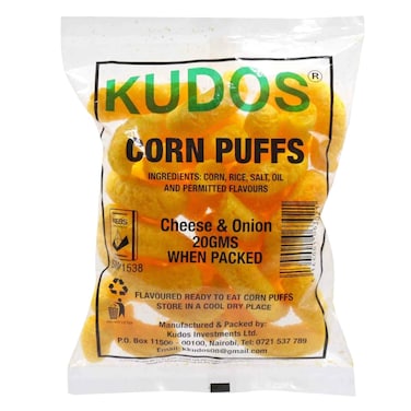 Kudos Cheese And Onion Corn Puffs 20G