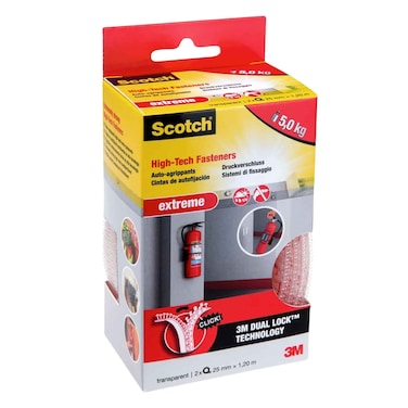 Clear mounting/fastening tape (Scotch brand) 2.5 cm wide, roll length 1.2 m. Adhesive designed for plastics, glass, light materials, crafts and home use.