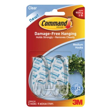 3M Command Clear Medium Hooks 2 Pieces
