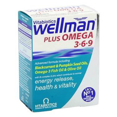 Vitabiotics Health And Vitality Wellman Supplements + Omega 3-6-9 Energy Release Supplements 56 Tablets