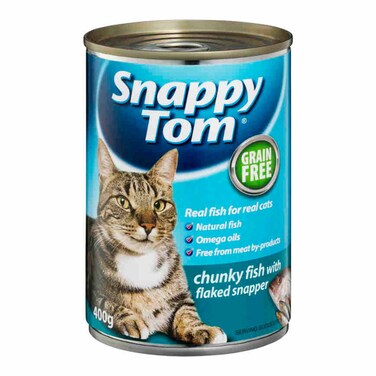 Snappy Tom Real Fish And Grain Free Chunky Fish With Flaked Snapper Cat Food 400g