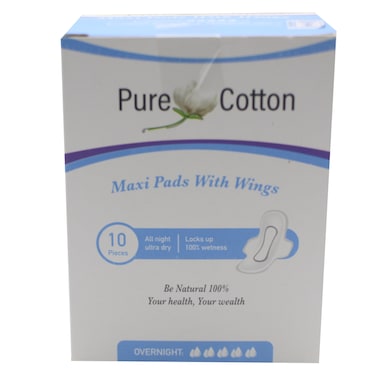 PURE COTTON MAXI PADS OVERNIGHT10'S
